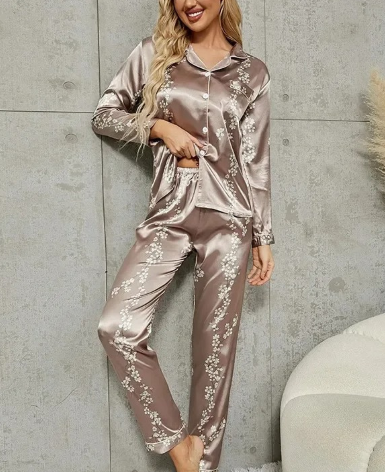 Discover the perfect combination of elegance and comfort with our silk pajamas for women, embellished with an enchanting floral print. These pajamas are crafted from high-quality silk, ensuring a silky-soft and luxurious experience. The charming floral print adds a touch of playfulness and sophistication to the classic design. With a comfortable fit and adjustable straps, these pajamas offer the ultimate comfort for a good night's sleep. Treat yourself to a touch of luxury and style with these beautiful silk pajamas, perfect for relaxing evenings and blissful nights.
